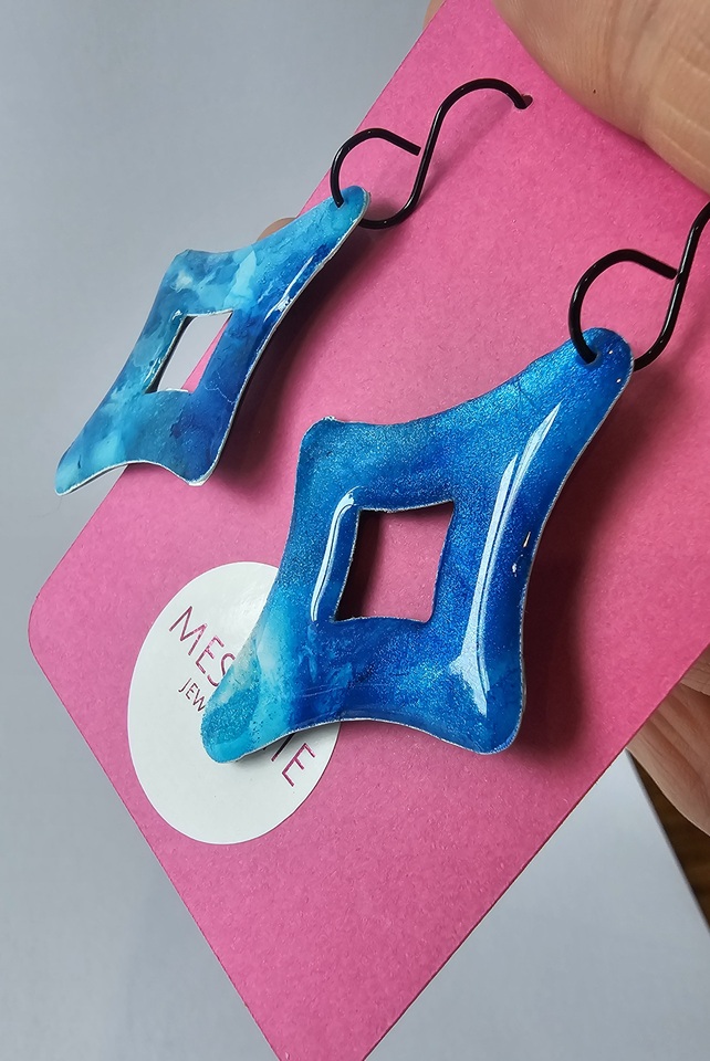 Stunning LAGOON Collection was hand-dyed in sapphire blue and turquoise inks reminiscent of tropical lagoon waters. Dyed on synthetic art paper and finished in resin.