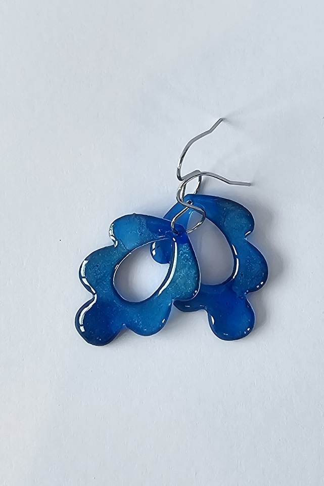 Handmade earrings, inspired by the OCEAN. Gorgeous mix of blues, hand-dyed on synthetic paper and set with resin.