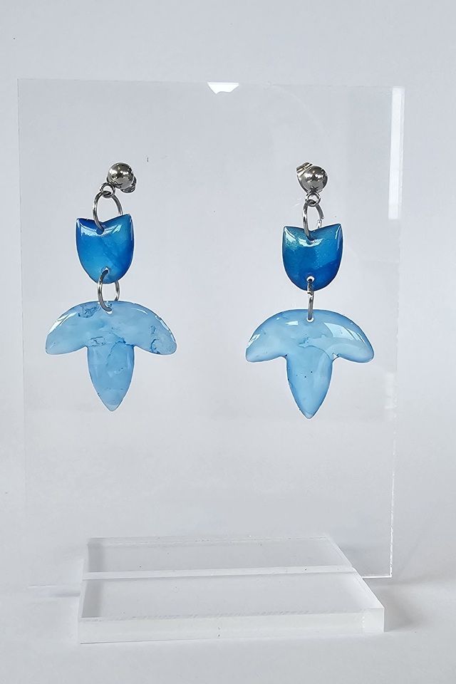 This pair is combined with a light blue ink mix - a beautiful combo of blues and is set on a stainless steel ball stud.