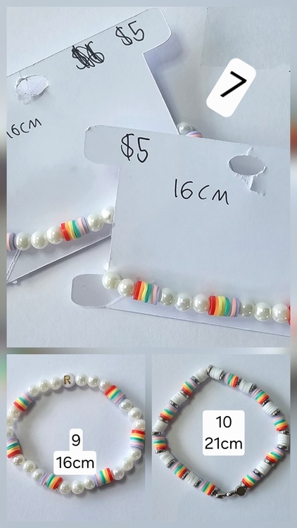 Sadie is 11 years old and has been busy making hand beaded bracelets on elastic string.